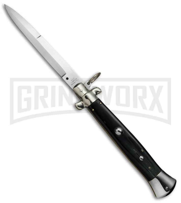 Be the first to review “A.G.A. Campolin 15″ Italian Stiletto Dark Horn Ring Pull Automatic Knife – Bayo” Cancel reply
