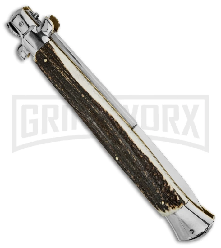 Be the first to review “A.G.A. Campolin 18″ Stag Horn Automatic Stiletto Knife (Bayonet)” Cancel reply