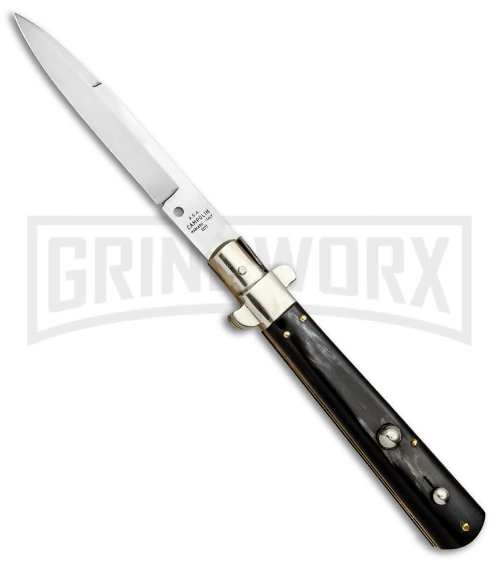 Pick up a limited edition, “Frosolone-style” picklock with a Brazilian horn handle and classic touches. This handsome knife offers nickel silver bolsters and buttons, brass liners, and a Brazilian horn handle. The blade tang is stamped with A.G.A Campolin Italy. This model makes a very nice piece to add to your collection.