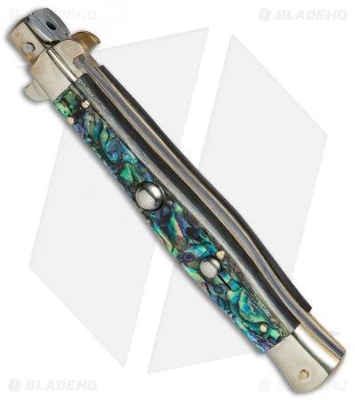 This 11″ Italian Stiletto from A.G.A. Campolin comes in the classic style with an abalone handle and a bayonet blade. A.G.A. Campolin offers some of the finest traditional Italian Stiletto’s on the market, with a variety of collectible styles to choose from. This 11″ model has an abalone handle with nickel silver bolsters and buttons. Brass pins and liners add a classic touch to the design. The blade comes in a bayonet style with a plain edge and a polished finish. Add a piece of Italian history to your collection with the A.G.A. Campolin 11″ Picklock Stiletto.