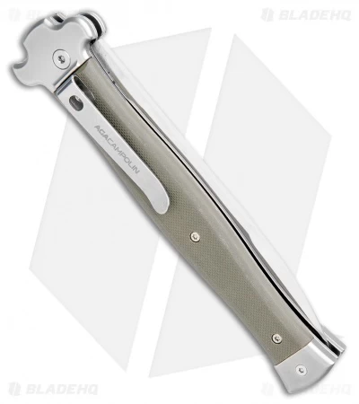 The AGA Campolin Zero+ automatic offers Italian-made craftsmanship at its very finest. This model is characterized by a flawless fit and finish, rock solid blade lock up, and snappy automatic deployment. The Zero+ is definitely not your grandpa’s Italian stiletto, with grippy G-10 handle scales, stainless steel bolsters, and a high performance N690Co steel blade. A stainless steel tip-down pocket clip finishes off the solid EDC design.