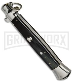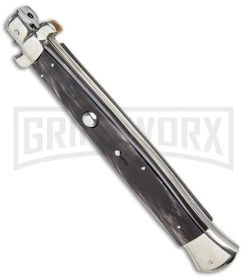 A.G.A. Campolin 16″ Sim Horn Sicilian Ring Pull Automatic Knife – Satin Plain